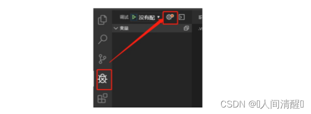 - 打开VS Code的DEBUG设置,先点击左边的Debug按钮,再点击上面的齿轮