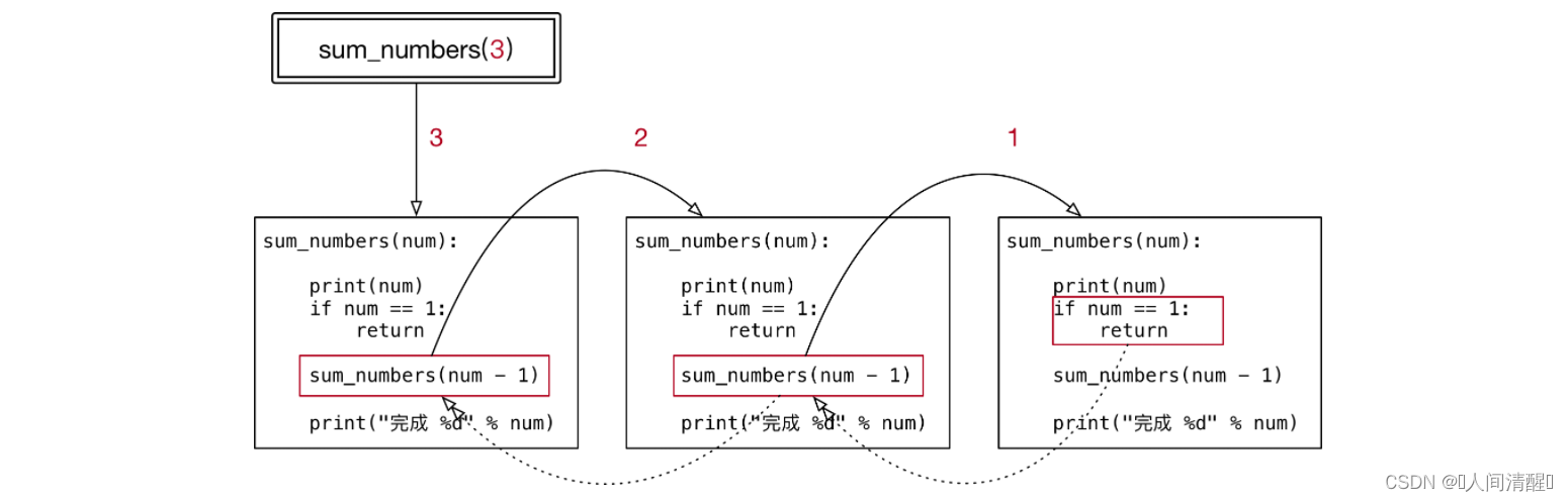 - 这个非常重要,通常被称为递归的出口,否则 会出现死循环!