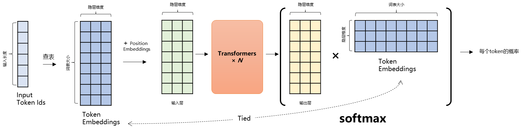 或者说,一个 LLM 就是一个 $N$ 层 Transformer 网络,例如 GPT-3.5 是 96 层。