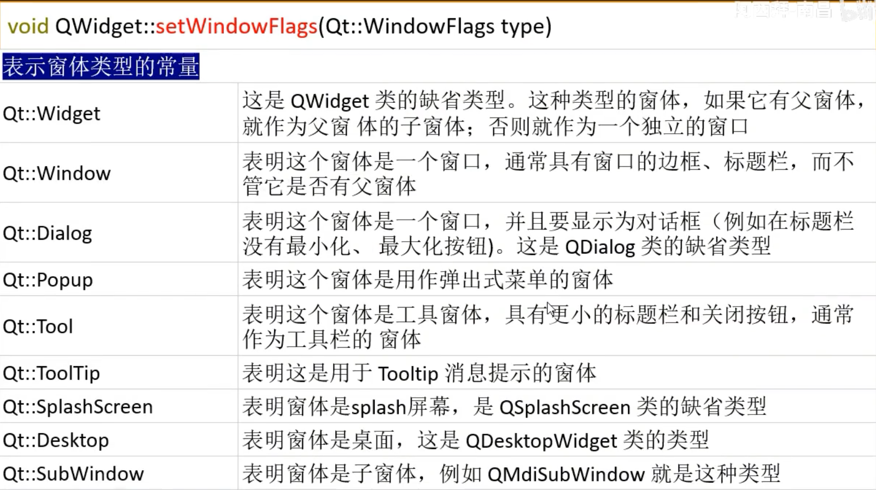 this->setWindowFlags(Qt::SplashScreen); //设置为SplashScreen, 窗口无边框,不在任务栏显示