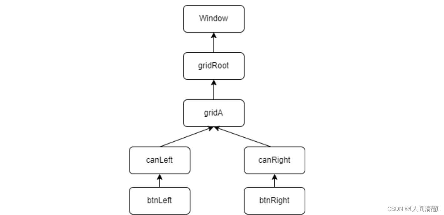 当单击btnLeft时,Button.Click事件会沿着btnLeft-canLeft-gridA-gridRoot-Window路线传送,单击btnRight原理相同。