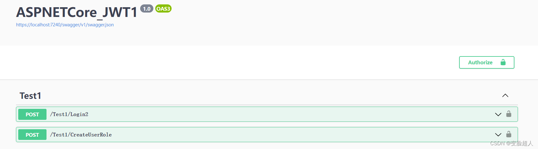 在Swagger带有Authorize按钮