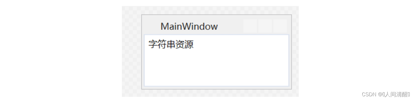 | <Window x:Class="WpfApp1.MainWindow" xmlns="http://schemas.microsoft.com/winfx/2006/xaml/presentation" xmlns:x="http://schemas.microsoft.com/winfx/2006/xaml" xmlns:d="http://schemas.microsoft.com/expression/blend/2008" xmlns:mc="http://schemas.openxmlformats.org/markup-compatibility/2006" xmlns:sys="clr-namespace:System;assembly=mscorlib" xmlns:local="clr-namespace:WpfApp1" mc:Ignorable="d" Title="MainWindow" Height="50" Width="200"> <Window.Resources> <ResourceDictionary> <sys:String x:Key="str"> 字符串资源 </sys:String> </ResourceDictionary> </Window.Resources> <StackPanel> <TextBlock Text="{StaticResource ResourceKey=str}" Margin="5"/> </StackPanel> </Window>