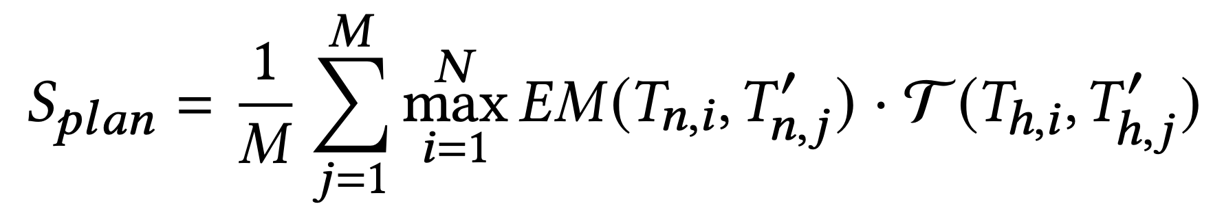 $ T_{h,i} $ 为 Groud Truth 中的任务描述(示例中的“task_name”),$ T’_{h,j} $ 为 待测试的 Agent Response 中的任务描述,可以是任何文本生成质量评估的方法(例如 ROUGE、 BLEU),做模糊匹配评分,分值为0-1;