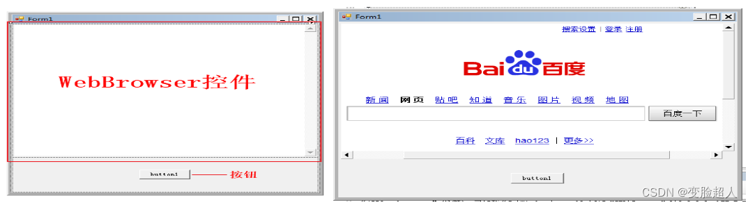 | private void button1_Click(object sender, EventArgs e) { this.webBrowser1.Navigate("http://www.baidu.com"); }