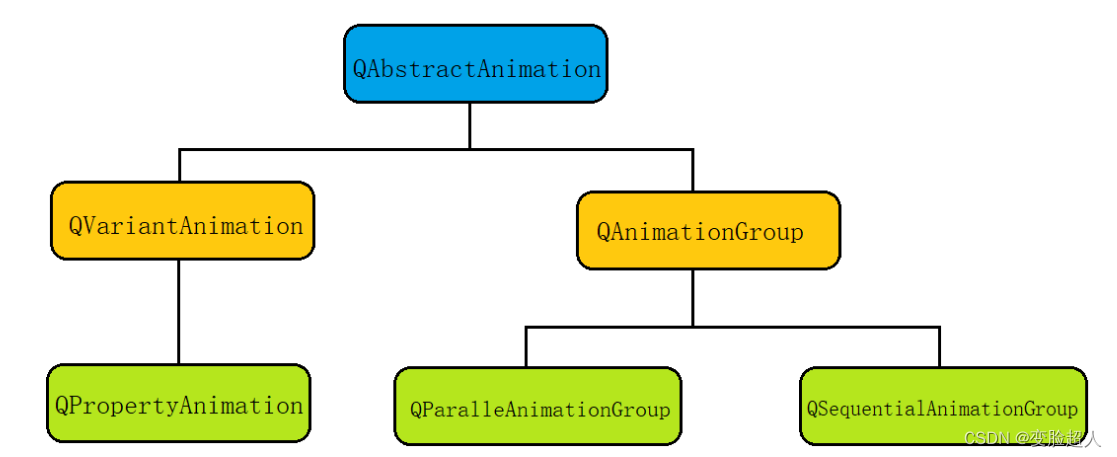 动画框架的目的是提供一种简单的方法来创建平滑的、具有动画效果的GUI界面。改框架是通过控制Qt的属性来实现动画的,可以应用在窗口的部件和其他QObject对象上,也可以应用在图形视图框架中。动画框架的主要类关系图如下: