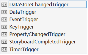 可以看出无论是Style中的Trigger还是控件下面的Trigger,都是使用的RoutedEvent属性来设置事件,但是有些事件是不属于RoutedEvent的,比如listbox的选择某个条目事件。而且这两种Trigger都是对故事板进行操作。